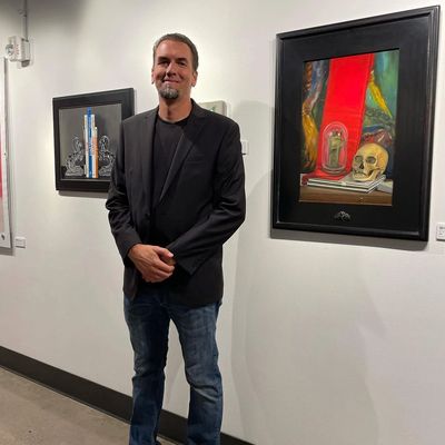 I am Mike Cotter, a Symbolic Still Life oil painter and Recomposed artist. My still lifes focus on Realism, depicting various Memento Mori scenes I’ve created, which contain mementos, insects, and geometric shapes that, when combined, reflect personal memories. Conversely, my Recomposed artworks intertwine elements from my past creations and new components, either digitally or physically collaged, creating a deeper narrative for the viewer. My Recomposed works have elements of realism but tend to be more abstract and textural. The spheres have become a common element representing life, spirits, or portals to a different time and place. While I have two completely different styles of work, they feed off of each other and drive my creativity for both.